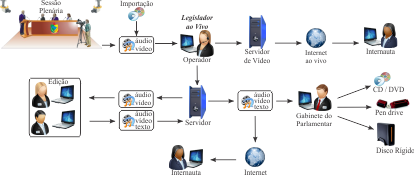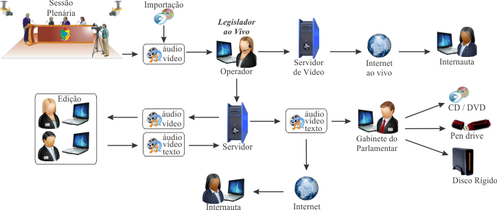 Sistema de gravação audiovisual da sessão plenária, com transmisssão ao vivo e sob demanda pela Internet.